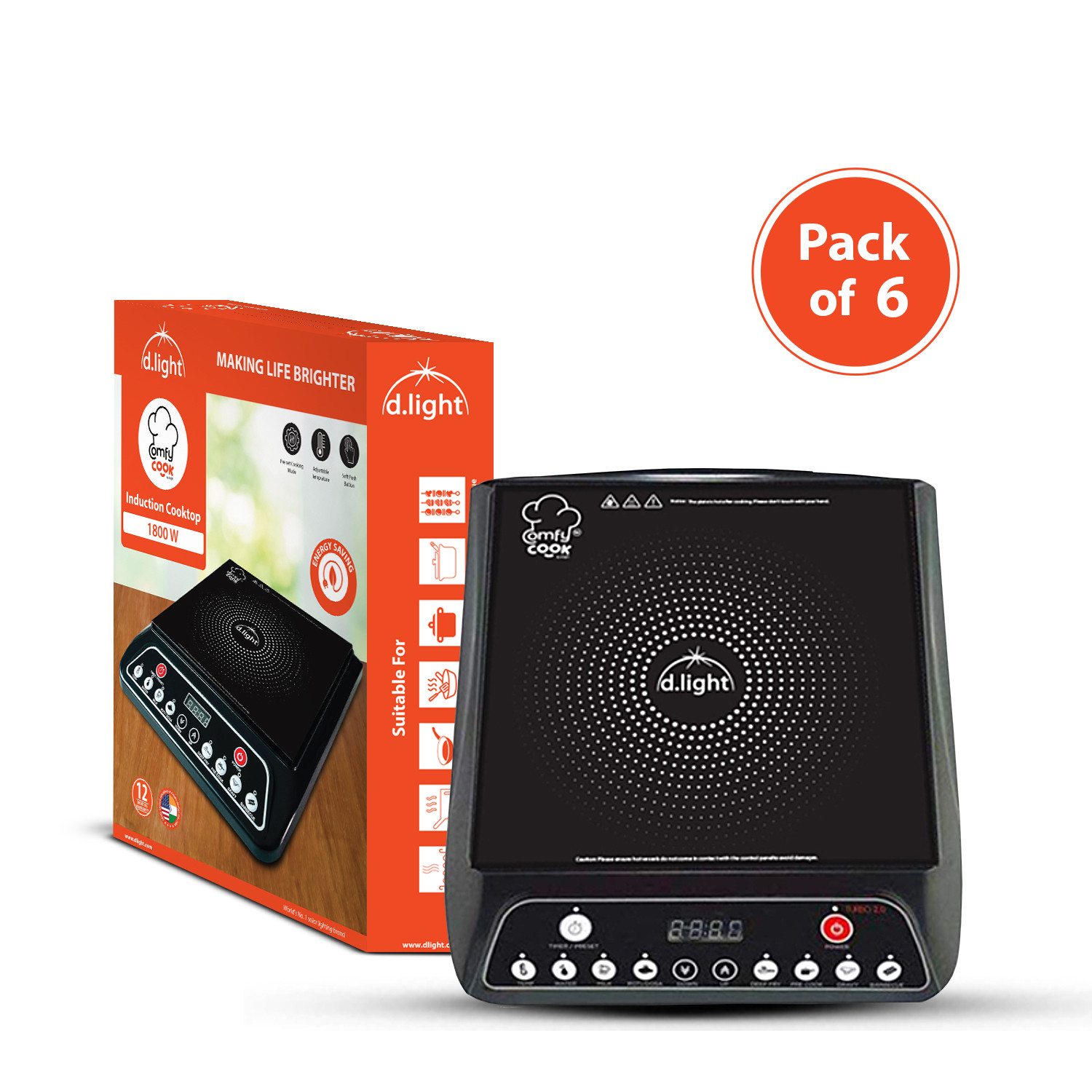 The ComfyCook Induction Cooktop by d.light is a powerful 1800W appliance designed for fast, efficient, and safe cooking. It features 7 preset cooking modes, LED display, built-in timer function adds convenience by automatically switching off the cooktop after the set duration. Its soft push buttons offer a smooth, user-friendly interface and are easy to clean, enhancing both comfort and durability. Designed with safety in mind, the ComfyCook ensures that heat is generated only in the cookware, keeping the surface cool and minimizing risks. Combining performance, efficiency, and