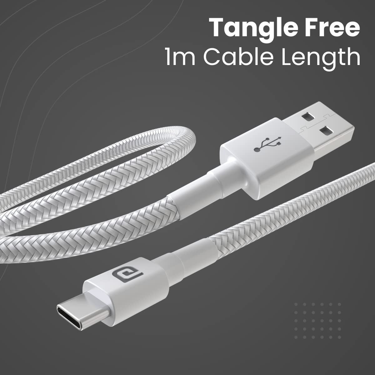 Portronics Konnect B Type C Cable with 3.0A Output, Nylon Braided, Fast Data Sync, Tangle Resistant, 1M Length(White)