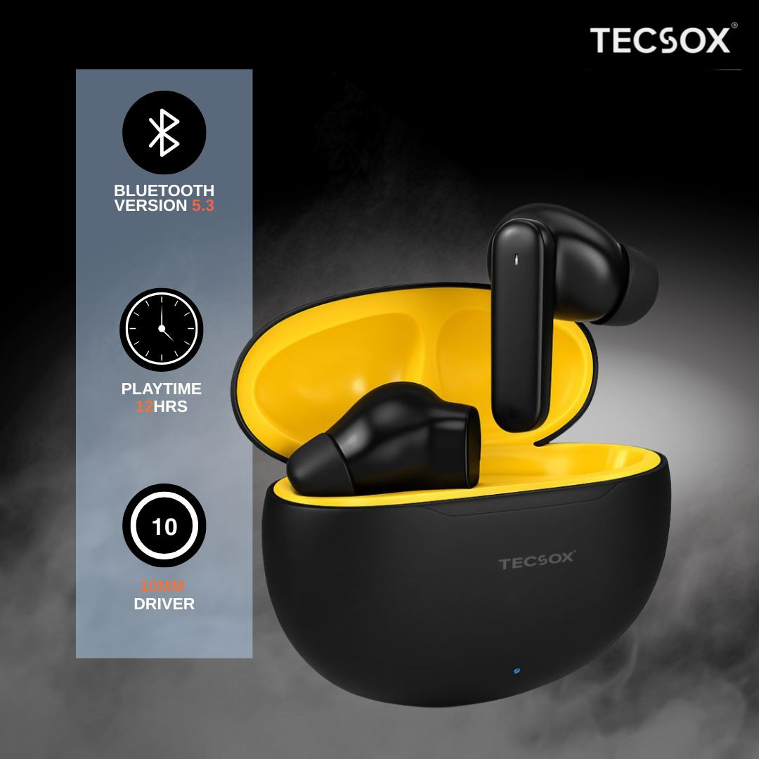 TecSox Pulse 611 BlackYellow | 12Hr Playtime | Deep Bass | Bluetooth Earbuds | IPX Water Resistant- Pack of 5