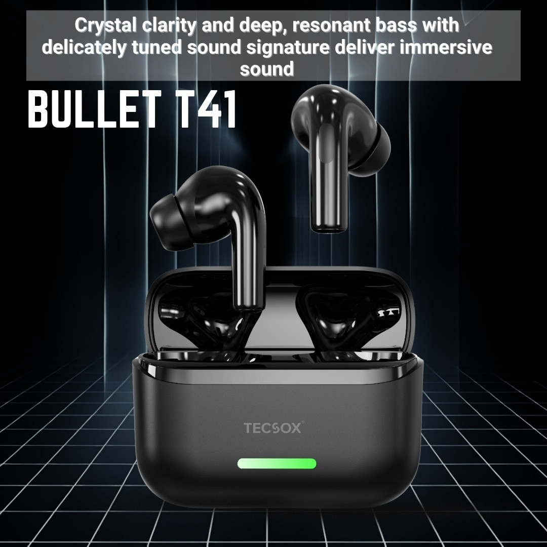 TECSOX Bullet T41 Wireless Earbuds 30H Playtime, Deep Bass, 13mm Drivers.