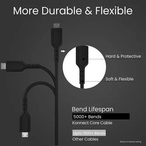 Portronics Konnect Core Type C Cable Tangle-Free with 3A Rapid Charging & 480mbps Data Transmission, 1 Meter Length