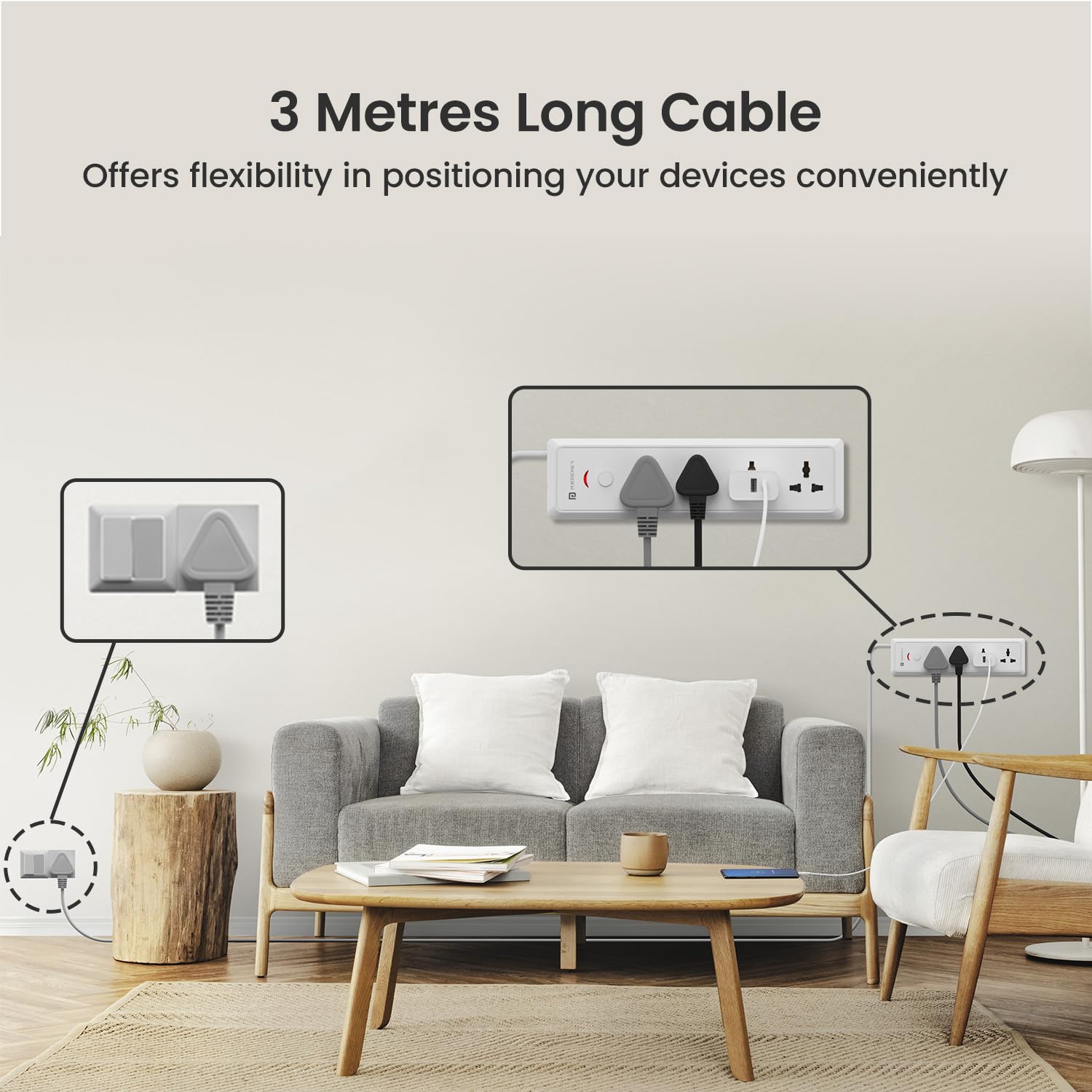 3 Power Sockets with 6 Ampere, 4 Universal Power Sockets, 1 Power Socket with 16 Ampere, Short Circuit Material, Wall Mount Holes for Convenience, Fire Retardant Build Material